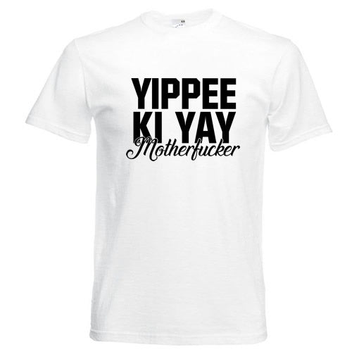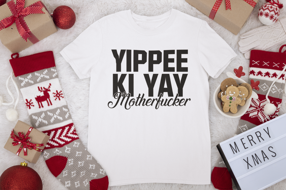 This wouldn't be the movie it is without this famous phrase! Celebrate the season in style with this Christmas T-shirt featuring the epic phrase spoken by Bruce Willis in the festive favourite. Perfect Christmas tee for action movie fans.